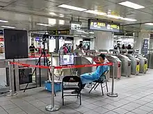 - ↑ (en) Liang Pei-chi, Chiang Yi-ching, « Passengers with fevers to be barred from six MRT stations », sur focustaiwan.tw, (consulté le ).