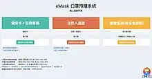 Un service national de vente en ligne pour une précommande de masques suivant les règles de rationnement est mise en place le sous le nom de eMask[99].