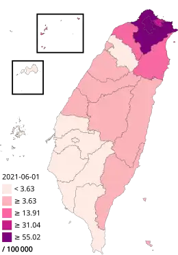 - ↑ (zh + en) « 全國嚴重特殊傳染性肺炎本土病例及境外移入病例地理分佈 », sur nidss.cdc.gov.tw (consulté le ).