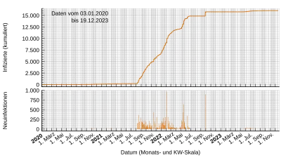 Le , le premier cas de Covid-19 du pays a été annoncé, un homme de 54 ans qui est revenu du Royaume-Uni[8].