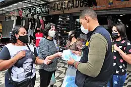 Le , les hôpitaux de São Paulo dénoncent un manque de matériel de santé, comme masques, gants et désinfectant pour les mains, causé par une augmentation des prix[121],[122]. Selon eux, les paquets de masques sont passés de 4,50 reals en janvier à 140 reals le . Le gouvernement a déclaré qu'il négocierait avec l'industrie pour répondre à la demande[123],[124]. À Salvador, il y a eu une panne de masques et de désinfectant pour les mains dans le commerce local[125]. Rio et cinq autres municipalités de l'État déclarent qu'il est urgent de contenir le coronavirus. Les municipalités de São Gonçalo et Guapimirim ont également déclaré l'état d'urgence et Niterói, Nova Iguaçu et Mesquita ont déclaré une situation d'urgence dans le domaine de la santé publique[125].