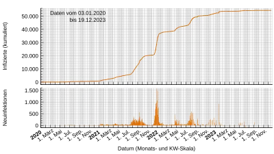 En 2023 il y avait 2 310 nouveaux cas portant le nombre de cas à 54 472 dont 15 décès.
