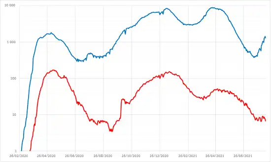 Au , le pays compte plus de 20 000 morts[37]. Au , le pays compte plus de 27 000 morts[2].