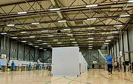 Une salle de sport reconvertie en centre de dépistage de la Covid-19 au Danemark.