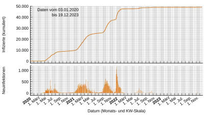 Le 17 avril 2020, le cap des 100 cas est dépassé. Le nombre total de personnes atteintes de la Covid-19 est de 108.