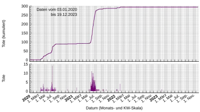 La barre des 10 morts est dépassée le 25 avril 2020 et celle des 100 morts le 23 juin 2021.