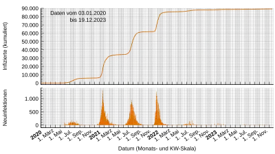 En 2023 il y avait 998 nouveaux cas et un décès, portant le nombre de cas à 89 162 dont 2 686 décès[23].