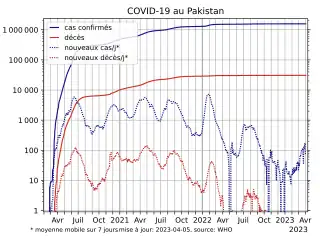 La pandémie de Covid-19 au Pakistan démarre officiellement le . À la date du , le bilan est de 30 626 morts.