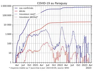 La pandémie de Covid-19 au Paraguay démarre officiellement le . À la date du , le bilan est de 19 598 morts.