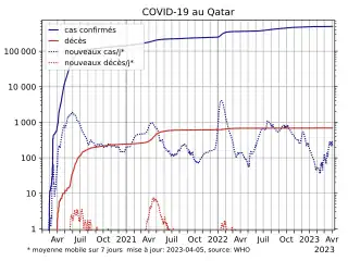 La pandémie de Covid-19 au Qatar démarre officiellement le . À la date du , le bilan est de 684 morts.