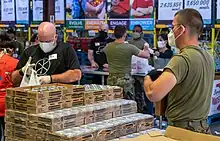 Le , le Département d'État a proposé d'aider l'Iran à combattre sa propre épidémie, alors que les cas et les décès dans ce pays augmentaient considérablement[90],[91]. L'Iran a cependant déclaré que les sanctions américaines entravaient sa lutte contre la maladie, ce que les États-Unis ont nié, affirmant que l'Iran avait mal géré la crise[92].