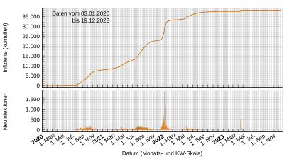 Le , le ministre de la Santé par intérim, Jeffrey Lloyd, a annoncé le premier cas confirmé, une femme de 61 ans.