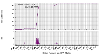 En décembre il y avait 212 cas confirmés et trois décès, portant le nombre de cas à 823 dont dix décès[27].