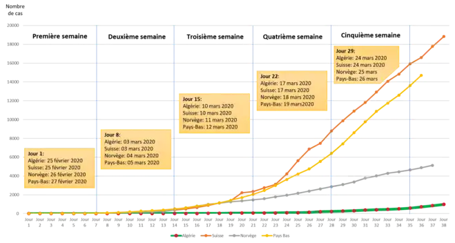 Le , un nouveau cas confirmé à Alger, un ressortissant algérien de 36 ans ayant séjourné en France[23].