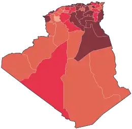 À partir du , un foyer de contagion se forme dans la wilaya de Blida[3], seize membres d'une même famille ont été contaminés par le coronavirus lors d'une fête de mariage à la suite de contacts avec des ressortissants algériens en France[4]. Progressivement, l'épidémie se propage pour toucher toutes les wilayas algériennes. D'autres cas de Covid-19 sont ensuite détectés. Dans ce pays de 44 millions d'habitants il y a eu, au selon les chiffres officiels, un total de 180 350 malades, et un total de 4 510 décès[5] ; mais ces chiffres sont largement sous-estimés selon les experts[6],[7],[8].