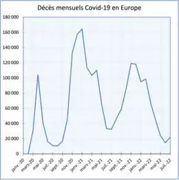 - Décès confirmés mois par mois dus à la Covid-19 en Europe de à [S 1].