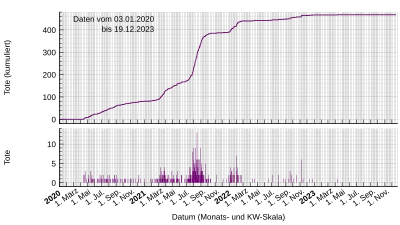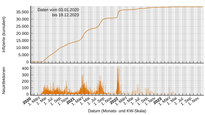 En décembre, il y avait 34 nouveaux cas et deux décès, portant le nombre de cas à 38 210 dont 466 décès[48].