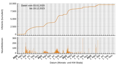 Le premier décès est intervenu le 26 avril 2020, le dixième décès le 5 juin 2020, et le 100ème décès le 22 août 2021[4].
