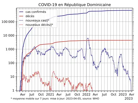 La pandémie de Covid-19 en République dominicaine démarre officiellement le . À la date du , le bilan est de 4 384 morts.