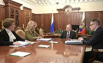 - Le , le président Poutine a déclaré à la télévision publique que la prochaine année universitaire commencerait normalement le 1er septembre et a appelé au respect des directives sanitaires et des exigences en matière de sécurité[29]. Le , la responsable de Rospotrebnadzor, Anna Popova, a déclaré que les étudiants étrangers peuvent être autorisés à entrer dans le pays pour étudier dans des universités, à condition qu'ils aient un document médical confirmant un test négatif et qu'ils l'aient reçu au plus tard trois jours avant leur arrivée[30].