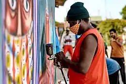 Illustration murale incitant à se laver les mains réalisée durant la pandémie de Covid-19 en Tanzanie.