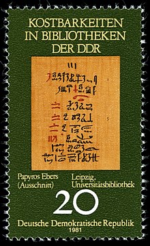 De 1954 à 1963, sous la direction de Hermann Grapow, le papyrus Ebers fait partie de la grande édition allemande des textes égyptiens de médecine en huit volumes, le Grundrisse der Medizin der alten Ägypter (titre souvent abrégé en français en Grundriss)[7].