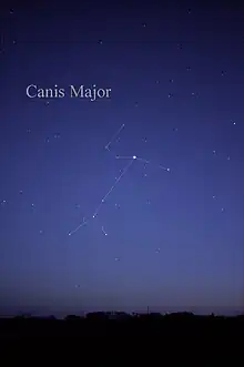La constellation du Grand Chien, visible à l'œil nu. L'étoile la plus brillante est Sirius.