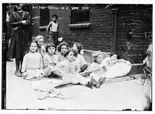 Enfants tenus à l'ombre durant une vague de chaleur (New-York, 1911).