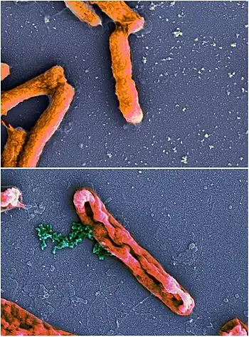 - ↑ « Molecular characterization and functional analysis of outer membrane vesicles from the antarctic bacterium Pseudomonas syringae suggest a possible response to environmental conditions », Journal of Proteome Research, vol. 13, no 3, , p. 1345–58 (PMID 24437924, DOI 10.1021/pr4009223)