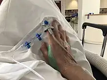 Le système de goutte-à-goutte peut être relié au capital veineux : à une voie veineuse périphérique ou profonde (voie veineuse centrale, cathéter à chambre implantable), au capital artériel ou intrathécale.