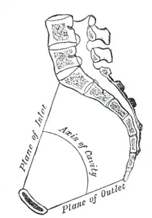 - le détroit inférieur (Apertura Pelvis inferior) formé d'avant en arrière, du bord inférieur de la symphyse pubienne, du bord caudal de l'ischion et de l'extrémité du coccyx.