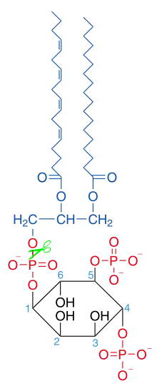 La phospholipase C est l'une d'entre elles. Elle intervient sur la fonction ester liant le glycérol et le phosphate, libérant un diglycéride et un phosphoalcool. In vivo, les phospholipases C catalysent l’hydrolyse du phosphatidylinositol-4,5-bisphosphate membranaire (PIP2) en diglycéride et inositol-1,4,5-trisphosphate (IP3).