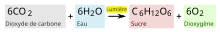 - des réactions non directement dépendantes de la lumière, dites « phase obscure », « phase sombre » ou « phase biochimique », dont l'équation générale chez les plantes vertes peut s'écrire :