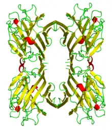 La phytohémagglutinine est formée de deux protéines apparentées, appelées leucoagglutinines (PHA-L) et PHA-E.