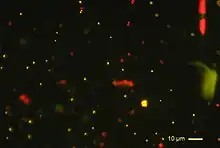 - hybridation in situ (FISH) : Elle utilise des sondes fluorescentes reconnaissant des taxons précis (espèce, genre ou classe, etc.[12],