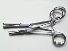 « Détournée de son usage chirurgical, elle permet aussi de clamper les tubulures de perfusions, de dévisser les tubulures résistantes, de serrer divers éléments. Avec l'usage, il arrive que le nom de l'inventeur ne soit plus utilisé comme complément de nom, mais soit mis en apposition et se comporte, dès lors, comme un adjectif de relation. On parlera alors de « pince Kocher » et non plus de « pince de Kocher ». »[1]
