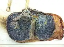Le placenta bi-partita est une anomalie placentaire. Au lieu de ne former qu’une seule masse, le placenta est divisé en deux parties reliées par le cordon ombilical ou des vaisseaux sanguins[1]. Des cas de placenta tri-partita ou multi-partita existent également lorsque le placenta est divisé en 3 ou plus parties. Si les deux parties du placenta ne sont pas de tailles équivalentes, on appelle plutôt les plus petites cotylédon (ou cotylédons) accessoire(s).