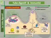 - ↑ (en) Mowat AM. « Anatomical basis of tolerance and immunity to intestinal antigens » Nat Rev Immunol. 2003;3(4):331-41.