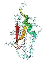 - ↑ (en) Kalyaneswar Mandal, Brad L. Pentelute, Valentina Tereshko, Vilasak Thammavongsa, Olaf Schneewind, Anthony A. Kossiakoff et Stephen B. H. Kent, « Racemic crystallography of synthetic protein enantiomers used to determine the X-ray structure of plectasin by direct methods », Protein Science, vol. 18, no 6, , p. 1146-1154 (PMID 19472324, PMCID 2774425, DOI 10.1002/pro.127, lire en ligne)
