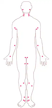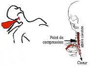 En France, les points de compression ne sont plus enseignés en secourisme depuis 2007 (réforme instituant le PSC1 à la place de l'AFPS, et le PSE1/2 à la place de l'AFCPSAM et du CFAPSE[7]). Les points de compression décrits plus bas étaient enseignés lors des anciennes formations de secourisme, notamment le brevet national de secourisme (BNS), l'AFPS et le CFAPSE. Ils étaient recommandés lorsque l'appui manuel direct est impossible ou inefficace, par exemple :