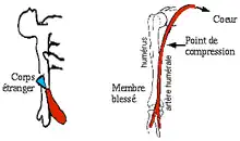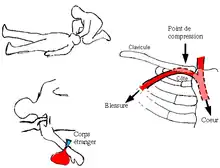 - 1 2 Croix-Rouge francaise, « Les tutos Croix-Rouge française : Hemorragie »(Archive.org • Wikiwix • Archive.is • Google • Que faire ?), sur Croix-Rouge française (consulté le ).