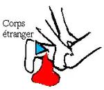 - la blessure comporte un corps étranger, qu'on n'enlèvera sous aucun prétexte (on peut également appuyer avec une main en amont et une main en aval du saignement, à proximité du corps étranger, ce qui est moins problématique) ;
