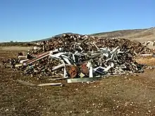 Déchets de munitions explosées et autres déchets militaires (plan de Canjuers), après ratissage annuel des champs de tir et avant évacuation.