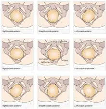 Schéma des différents types de présentation fœtal lors d'un accouchement