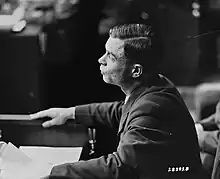 Le discours d'ouverture du procès est prononcé par le brigadier-général (général de brigade en France) Telford Taylor, chef du conseil pour les crimes de guerre[10].