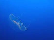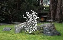 Steel Jellyfish (2006), la sculpture inspirée de la GFP. L’image montre la sculpture en acier inoxydable aux Friday Harbor Laboratories de San Juan Island (Washington), là où la GFP a été découverte.
