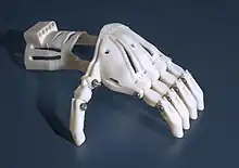 - de l'esthétique. L'esthétique d'une exo-prothèse est un problème qui préoccupe les amputés, spécialement pour les membres supérieurs. Il existe des gants en silicone pour recouvrir la prothèse de l'avant-bras.