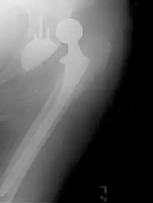 Le "stress shielding" est une résorption osseuse causée par les sollicitations mécaniques de l'implant sur l'os au niveau de la tige fémorale. Cela entraîne sur le long terme une mobilité de l'implant avec le fémur. L'implant doit être alors remplacé par un autre avec une tige fémorale plus importante (plus longue et de plus gros diamètre) pour pallier ce problème.