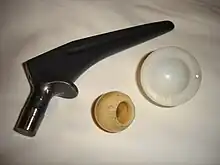 - implant céramique, quasi inusable, il a repoussé la limite statistique des 15 ans de durée de vie moyenne des prothèses. Son principal désavantage est sa fragilité en cas de choc et sa difficulté industrielle d'élaboration.