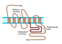 La fixation de l'agoniste sur ce récepteur active, par modification de conformation, la protéine G qui lui est couplée. Celle-ci hydrolyse alors du GTP en GDP (d'où son nom de « G » pour « Guanine binding protein »). Cela provoque un deuxième changement de conformation, cette fois au niveau du canal ionique associé au complexe récepteur-protéine G en question. Ce canal devient perméable à l'ion potassium. Du K+ peut donc sortir du compartiment post-synaptique, créant ainsi le courant ionique nécessaire à la propagation du signal. Ce récepteur est dit « à messager unique » car il ne fait intervenir que la protéine G comme intermédiaire. Il est impliqué dans la voie de transmission rapide : l'effet est obtenu 30 à 100 ms après fixation du récepteur[1].